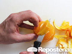 Cortar una naranja en gajos Mezclar con movimientos envolventes